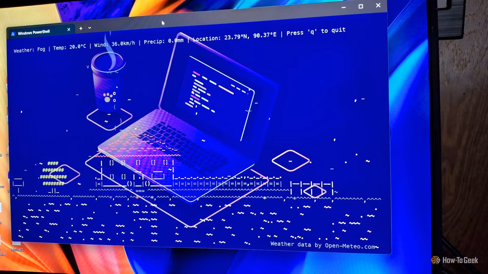 Eso es exactamente lo que pasó cuando corrí por primera vez. En lugar de imprimir un pronóstico simple, mi terminal se llenó de nubes a la deriva, lluvia que caía y un pequeño panel meteorológico que informaba silenciosamente de las condiciones exteriores.