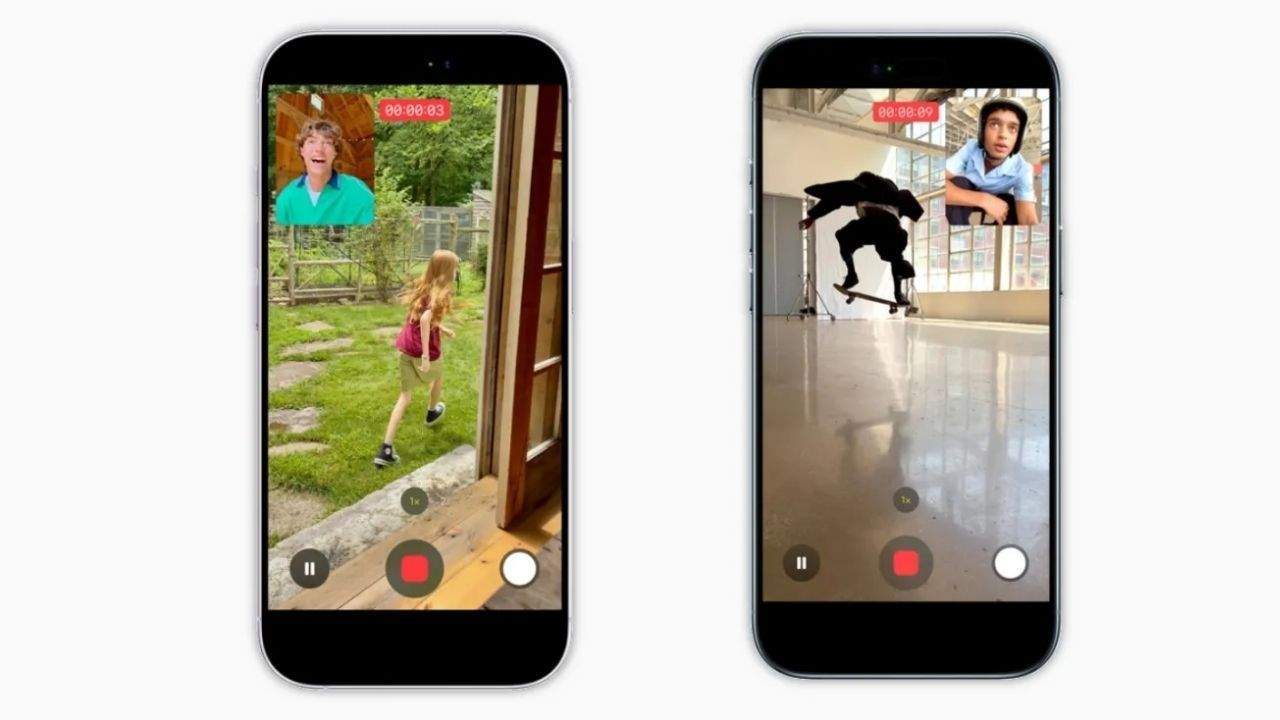 Apple mostró por primera vez la grabación de vídeo con doble cámara en el escenario durante la presentación del iPhone 11 Pro en 2019. En aquel momento, esta función solo estaba disponible con apps de terceros, pero ahora la app Cámara también la integra directamente. Captura dualpermite a los usuarios añadir la cámara frontal a la imagen como una pequeña ventana. En el vídeo grabado, la imagen de la cámara trasera se presenta a pantalla completa, mientras que los fotogramas de la cámara frontal se sitúan en una esquina. Por lo tanto, es posible ver tanto el entorno como las reacciones del usuario en el mismo archivo en tomas de conciertos, eventos o vlogs. Además de todo esto, el acceso mediante un solo botón hace que la función sea más funcional.
